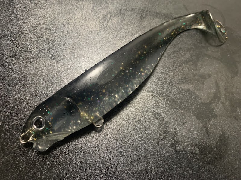 従来のスイムベイトを水深30cm程のエリアに投げると、巻き始めた頃にはボトムについてしまっていた。